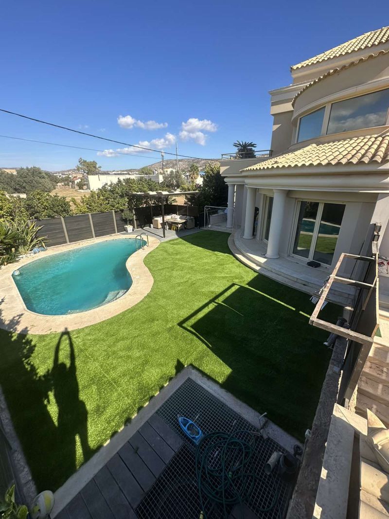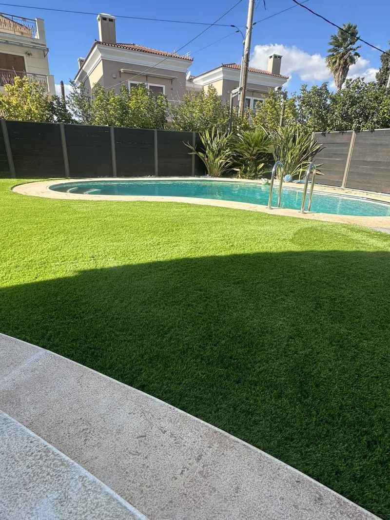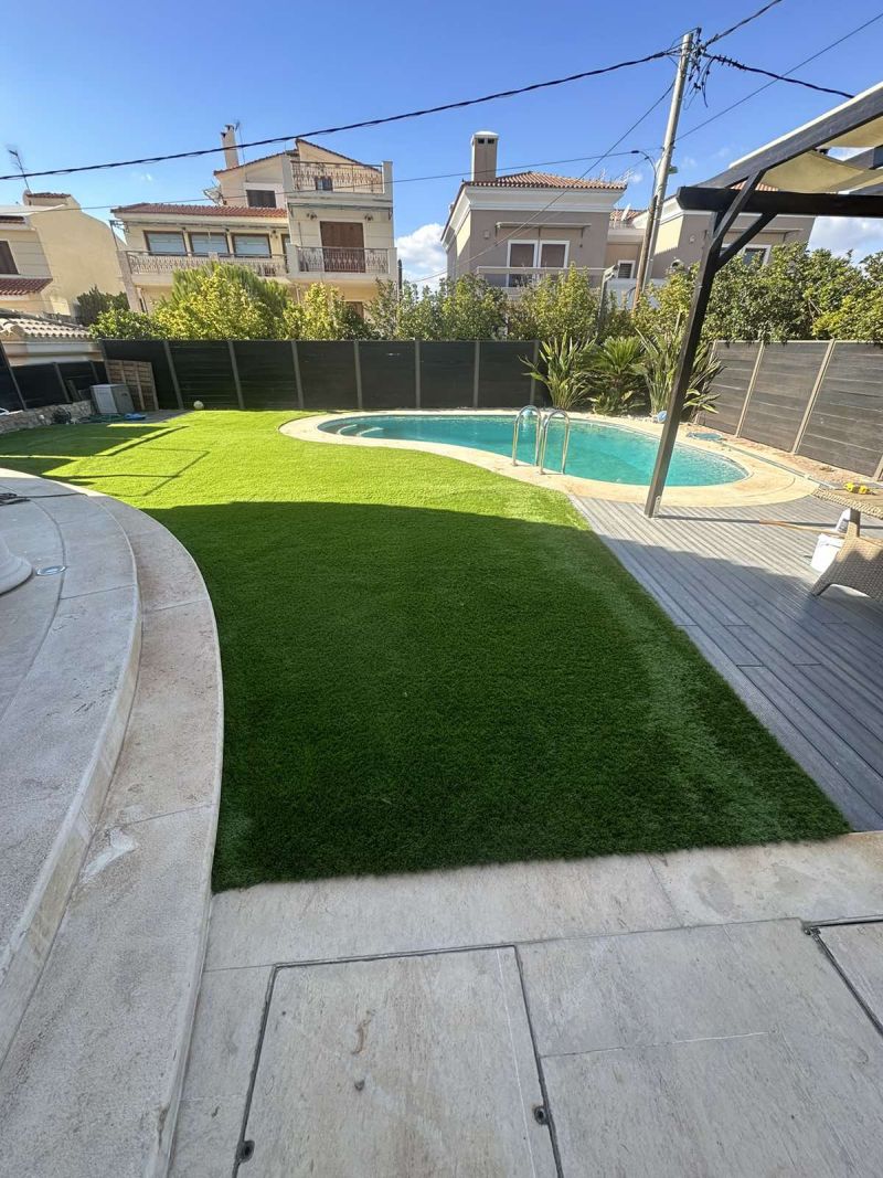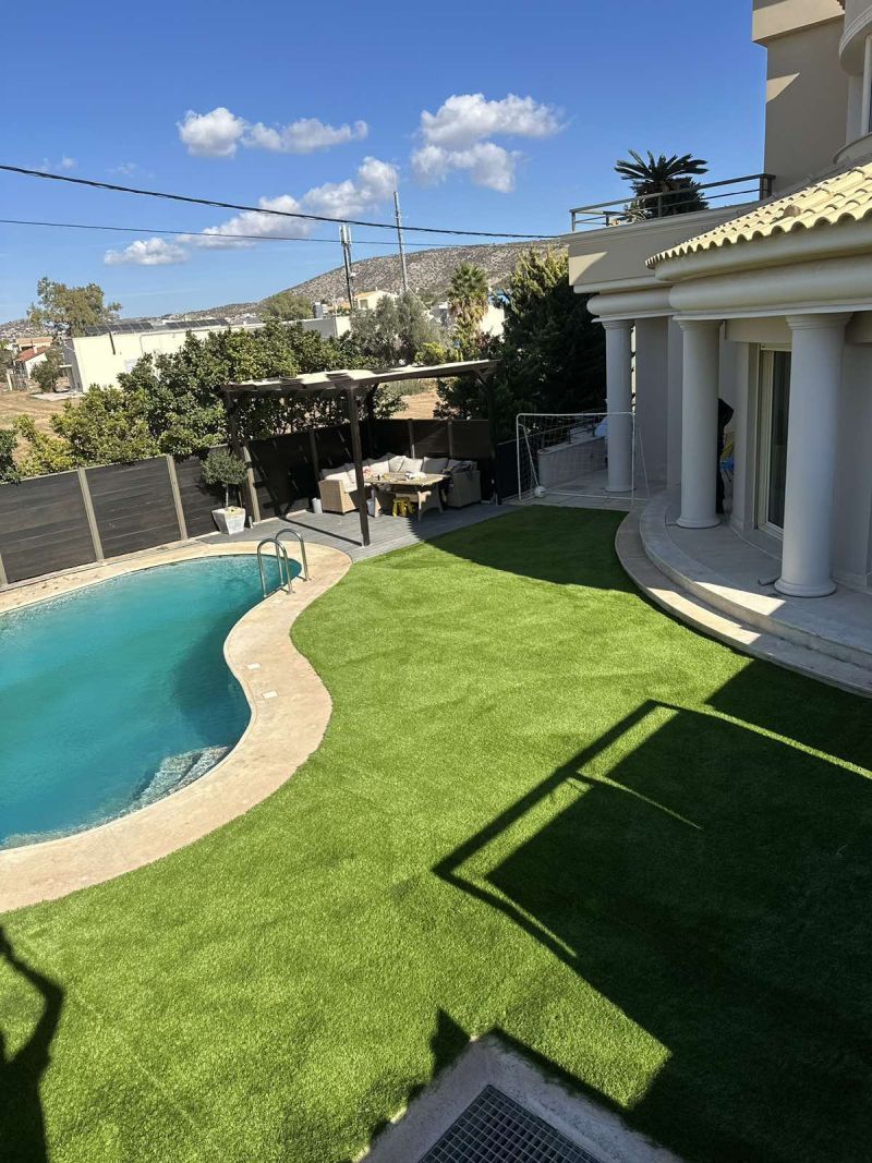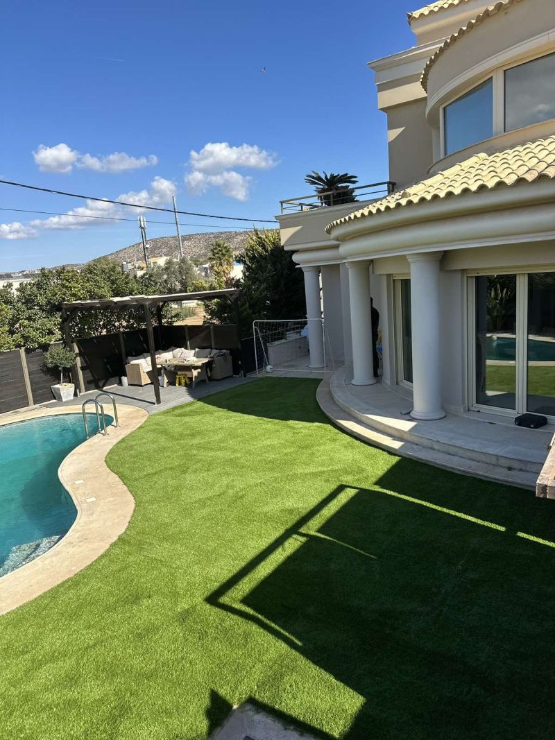 Ο ιδιωτικός κήπος στη Βάρη αναβαθμίστηκε με τον συνθετικό χλοοτάπητα New S 50mm από την Grass Luxury, προσφέροντας ένα εξαιρετικό αποτέλεσμα που συνδυάζει φυσική εμφάνιση και υψηλή αντοχή.