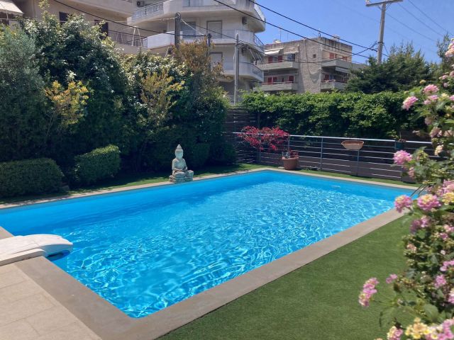 The private garden in Vari was upgraded with New S 50mm synthetic grass from Grass Luxury, offering an excellent result that combines a natural look with high durability.