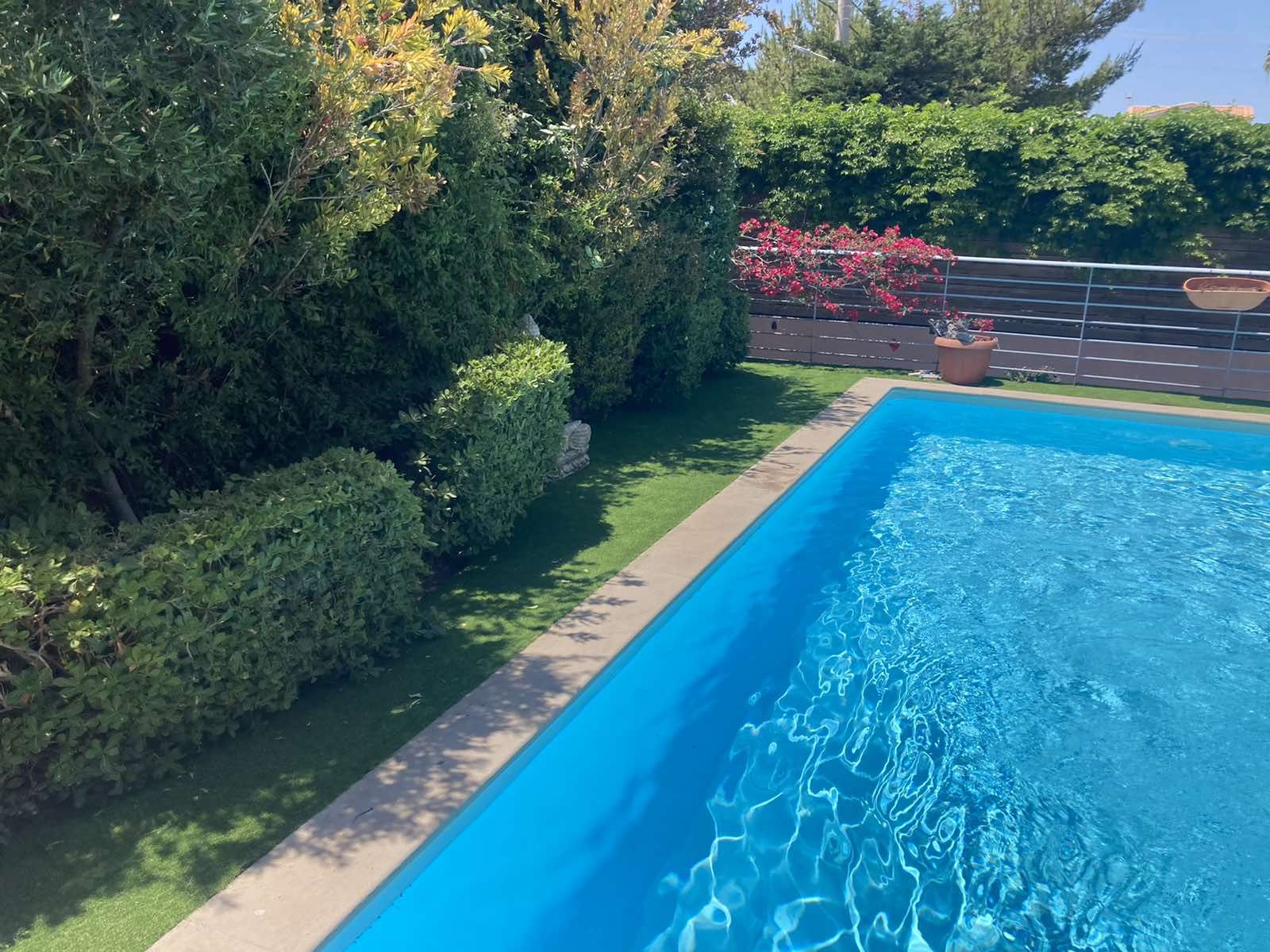 In the garden, natural grass requires a lot of care to be ready next spring. The plastic lawn is suitable for the balcony and the garden, it saves effort, maintenance time, and lays even if the ground has some slopes. Also, it can be placed around the perimeter of the pool as it withstands water. They can also fit swings, seesaws and various inflatable toys, which is why most daycares prefer it in front yards and schools for events.